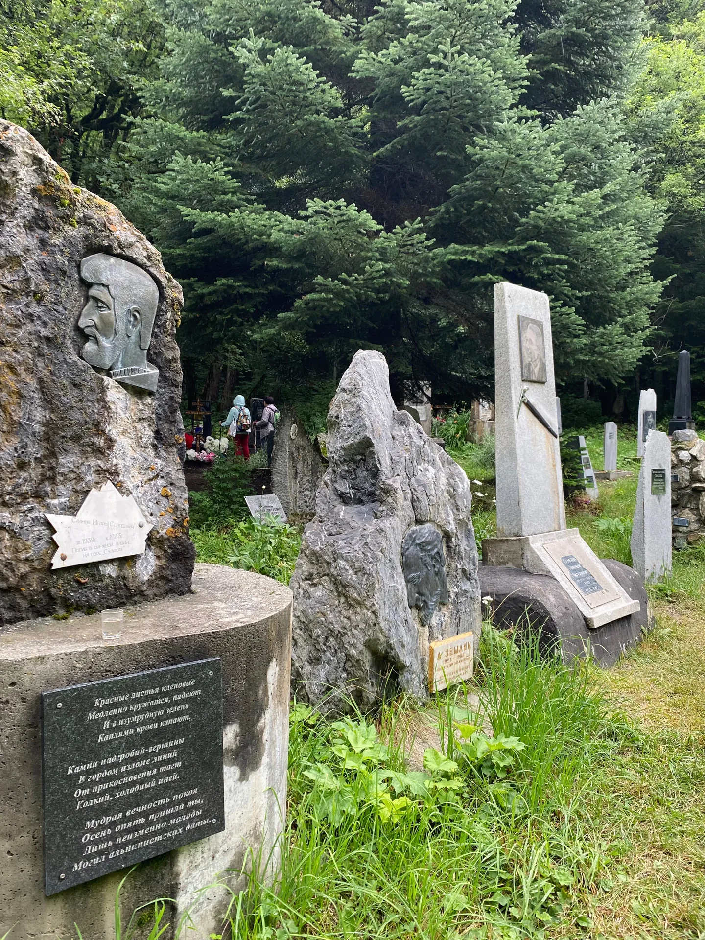 Тихий мемориал, спрятанный в лесу. Здесь нет привычной кладбищенской атмосферы — это скорее музей под открытым небом и мемориал в горах. Вместо крестов на могилах часто стоят ледорубы, карабины или фрагменты скал. На памятниках высечены пронзительные эпитафии: «Так оставьте ненужные споры, я себе уже все доказал...». Некоторые могилы — это кенотафы (символические захоронения), так как тела погибших альпинистов так и не были найдены или спущены с высоты. Это святая память гор.