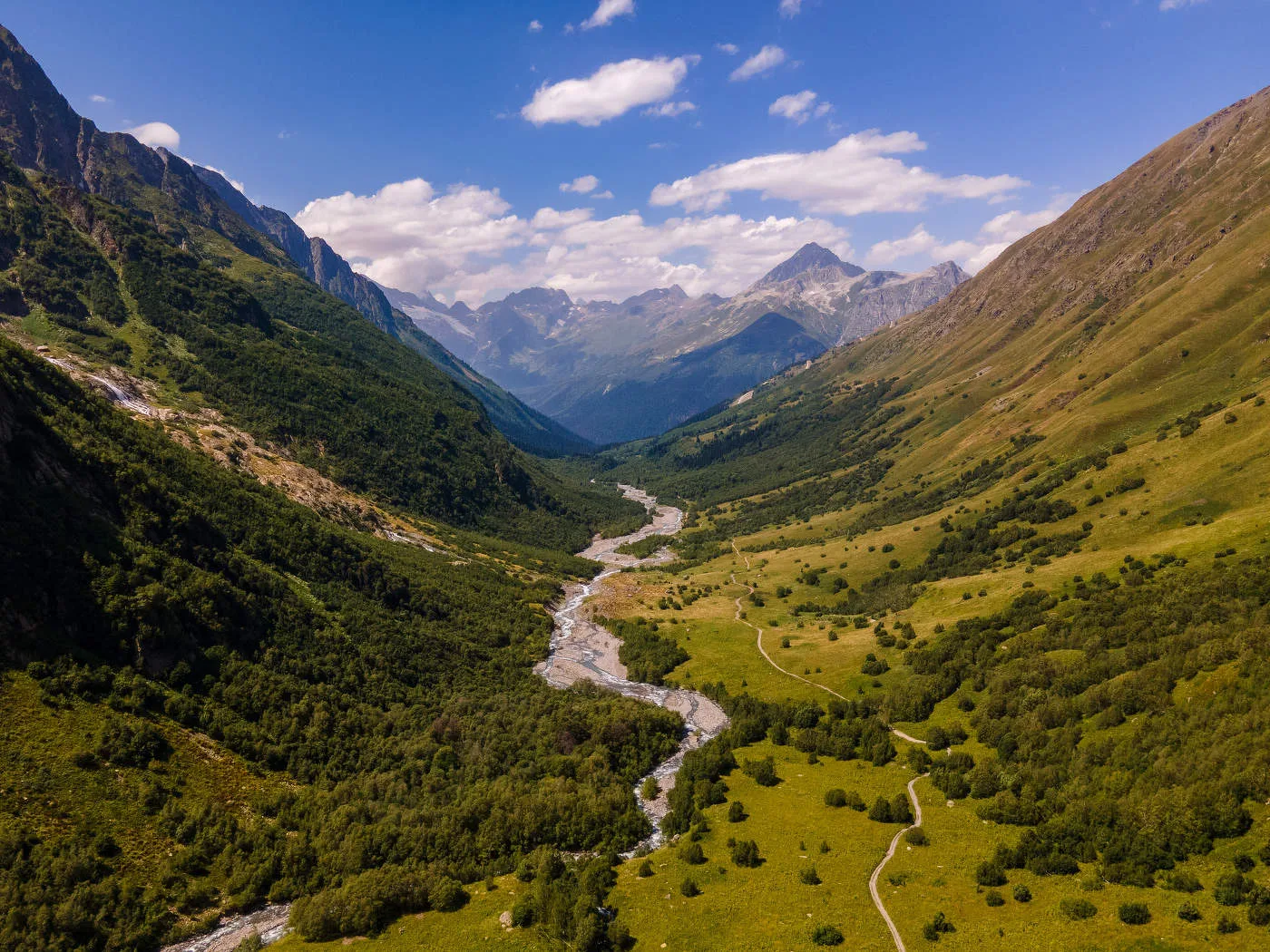 Обширное субальпийское плато, покрытое ковром из цветов и трав. Поляна окружена величественными пиками: Джугутурлучат и Домбай-Ульген нависают прямо над головой. Главная достопримечательность здесь — огромный валун, который называют камень Высоцкого. По легенде, бард любил отдыхать здесь и давал импровизированные концерты. Это идеальное место для отдых на природе: тихо, солнечно и невероятно красиво.