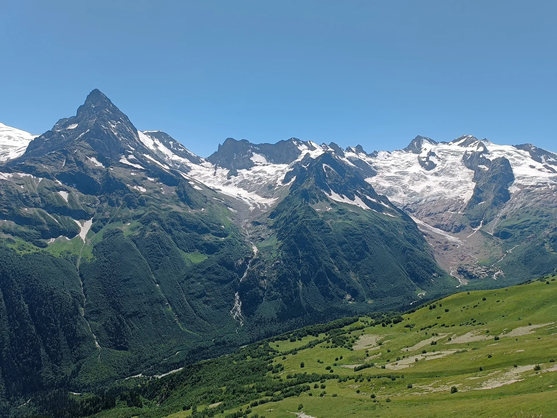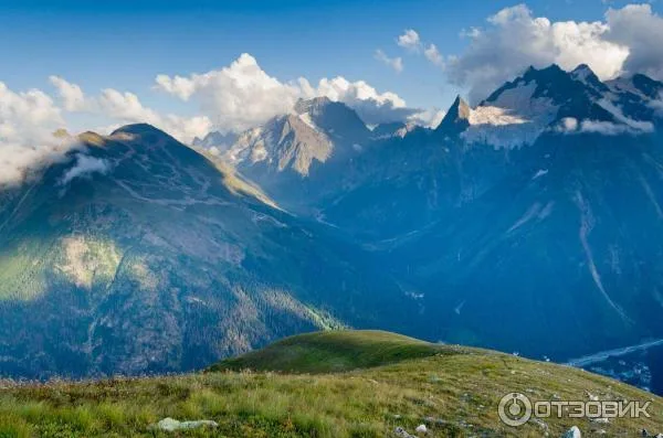 Это маршрут не для новичков. Хребет Семенов-Баши славится своими панорамными точками. С высоты открывается вид на 360 градусов: видны Домбай-Ульген, Белалакая, Джугутурлучат и, в ясную погоду, двуглавый Эльбрус. Сама вершина имеет характерную округлую форму, за что ее называют купол Семенов-Баши. Тропа идет через пихтовый лес, затем через луга, выводя на гребень, откуда весь Домбай виден как на ладони. Это, пожалуй, лучшая смотровая площадка региона.