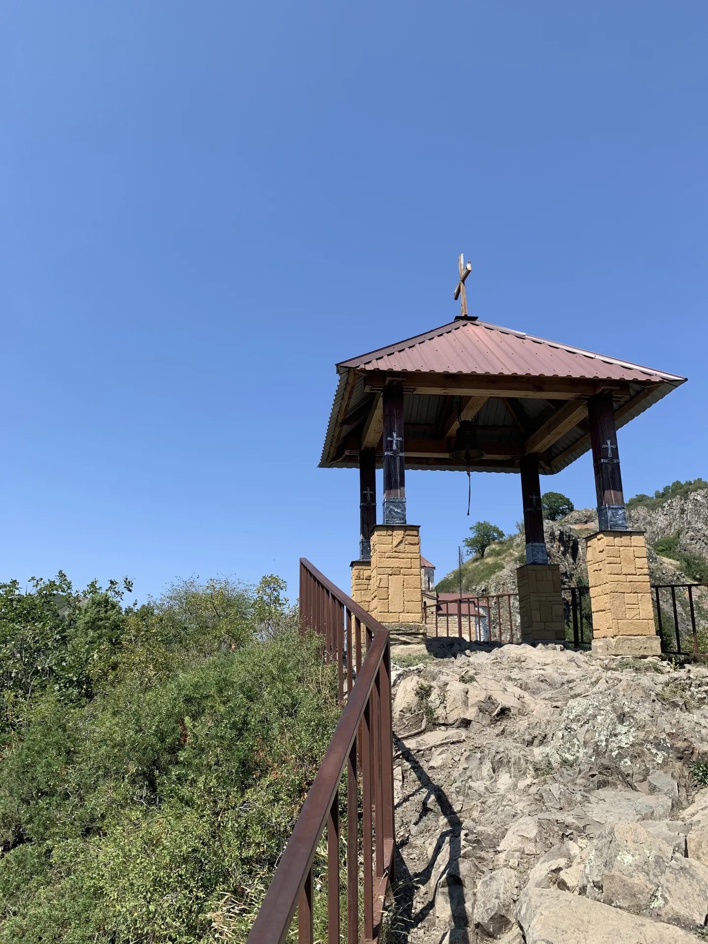 Храм прилепился к самому краю скального отрога гора Шоана, напоминая ласточкино гнездо. Архитектура аскетичная, но гармоничная. В отличие от Сентинского, этот храм часто бывает белым (его белят), и он является действующим (проводятся службы). Внутри скромно, но атмосферно. Рядом находится беседка с колоколом, ударить в который может каждый желающий — звон разносится по всей долине. Это, возможно, древнейший храм России, где до сих пор идет молитва.