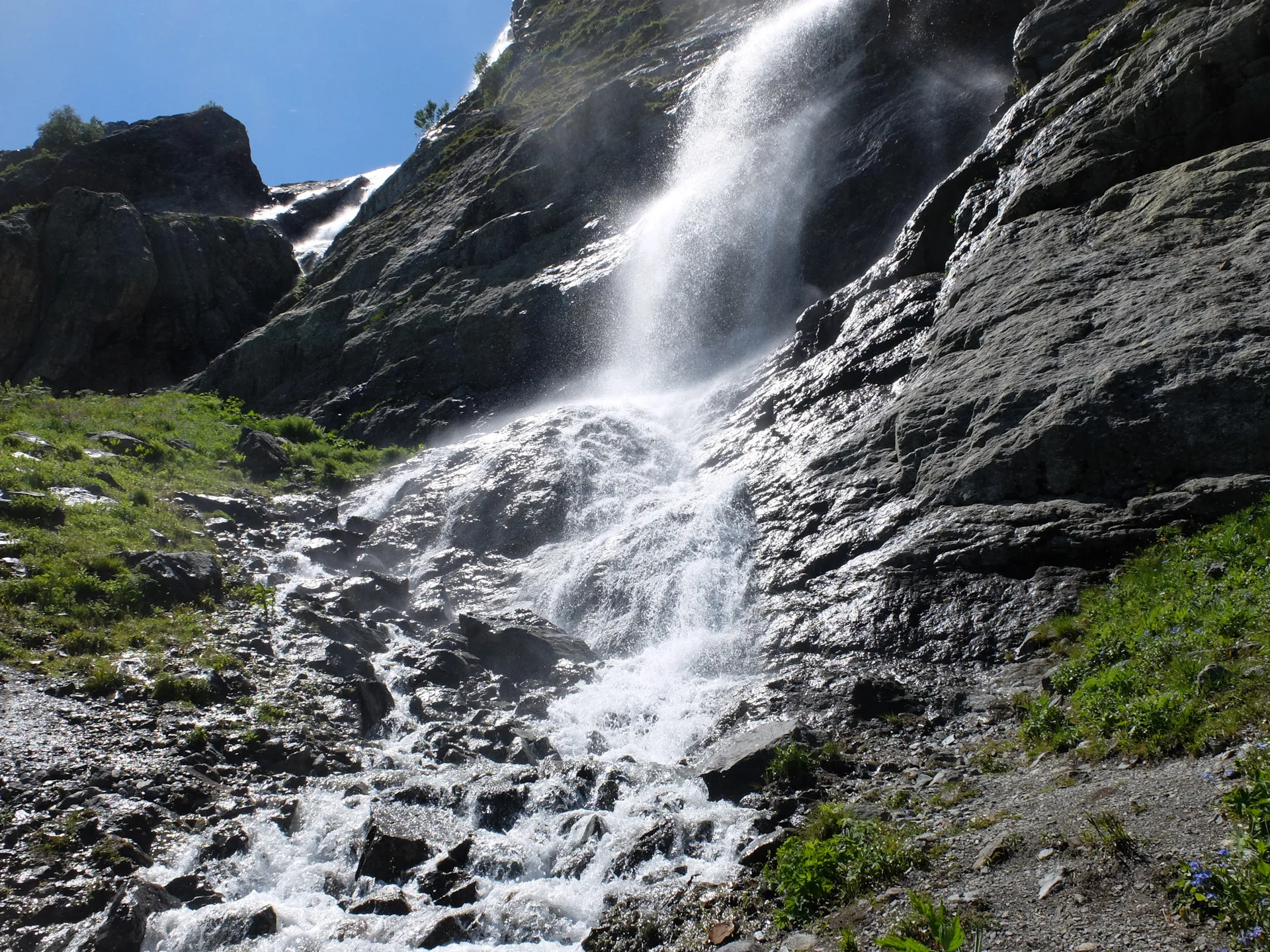Это, безусловно, самые мощные водопады Кавказа в этом районе. Представьте себе огромную скальную стену, с которой с высоты почти 100 метров срываются вниз несколько бурных потоков. Вода, ударяясь о камни, превращается в мелкую водяную пыль, создавая в солнечный день яркие радуги. Шум стоит такой, что рядом сложно разговаривать. Это визитная карточка курорта и главные достопримечательности Архыза фото которых украшают все путеводители.