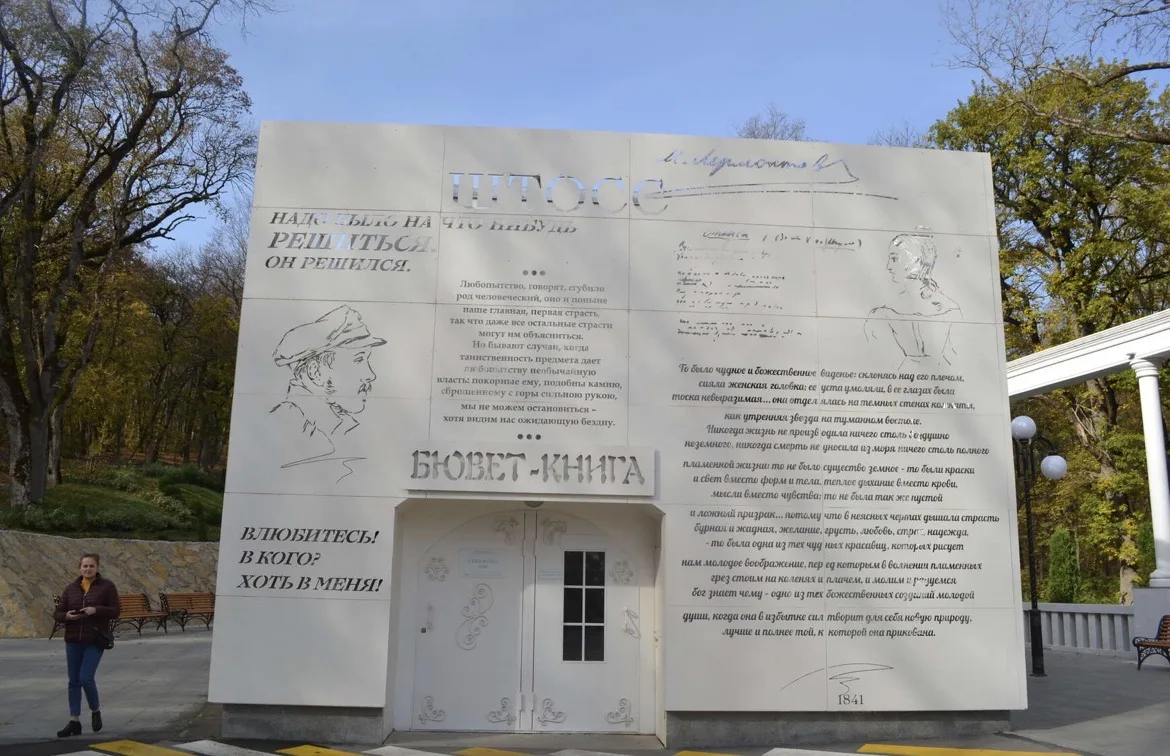 Бювет-книга в Железноводске — это одна из самых молодых достопримечательностей курорта. Если исторические галереи строились в XIX веке, то этот объект появился совсем недавно — в 2019 году. Его открытие было приурочено к масштабной реконструкции парка и продлению Каскадной лестницы. Авторы проекта решили объединить две главные «фишки» региона: целебную воду и богатое литературное наследие. Так возникла идея создать павильон, который не просто выполняет утилитарную функцию раздачи воды, но и служит арт-объектом, напоминающим о связи поэта М.Ю. Лермонтова с Кавказом.