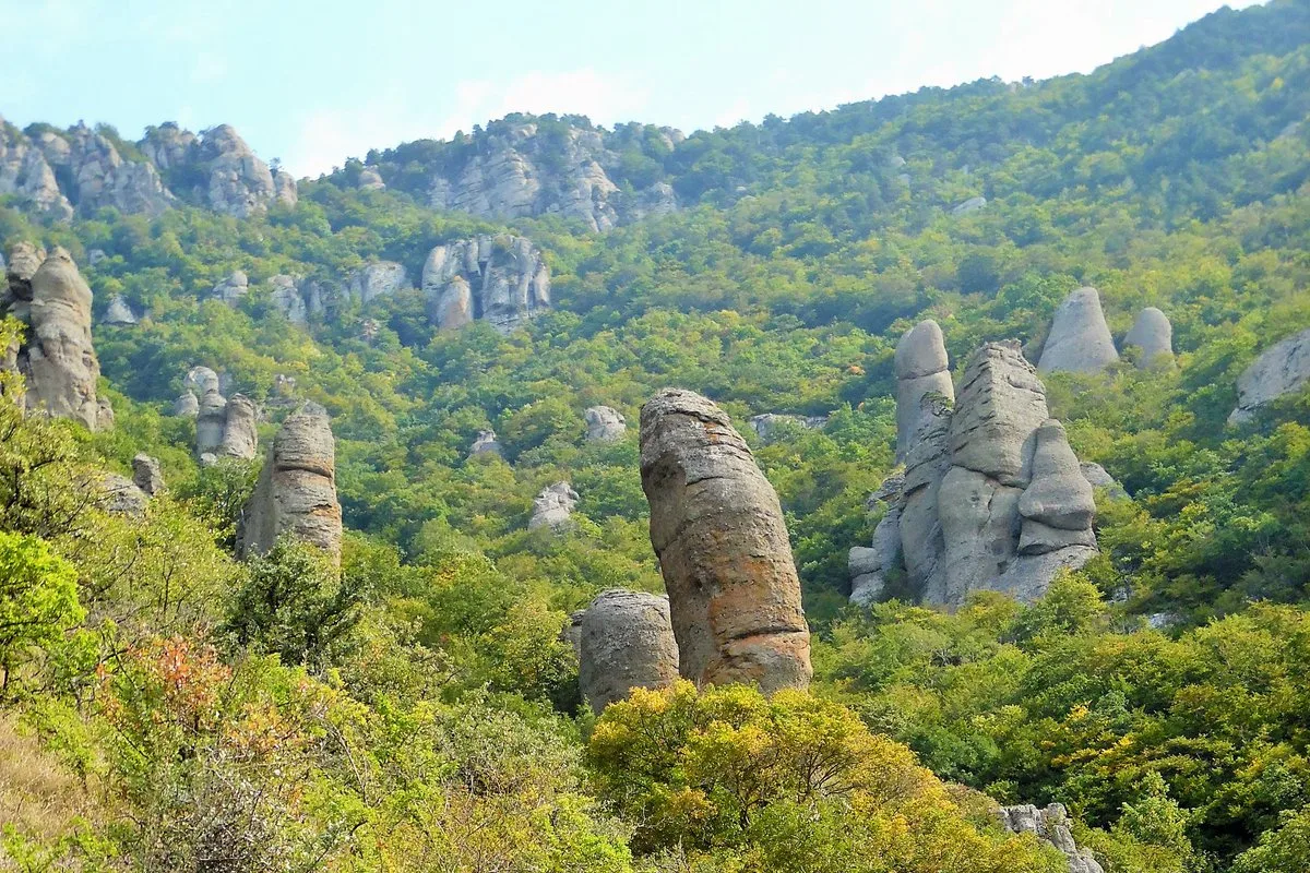 Долина Привидений — это уникальный памятник природы, расположенный на юго-западном склоне горного массива Демерджи. Здесь, словно стражи, возвышаются сотни каменных фигур, напоминающих людей, животных, башни и фантастических существ. Свое название долина получила из-за оптической игры: в сумерках или при густом тумане тени от скал начинают "двигаться", меняя очертания, что создает мистическую, а порой и жутковатую атмосферу. Гора Демерджи экскурсия на которую является обязательным пунктом для любителей пешего туризма в Крыму, меняет свой цвет в течение дня от золотистого до багряного.
