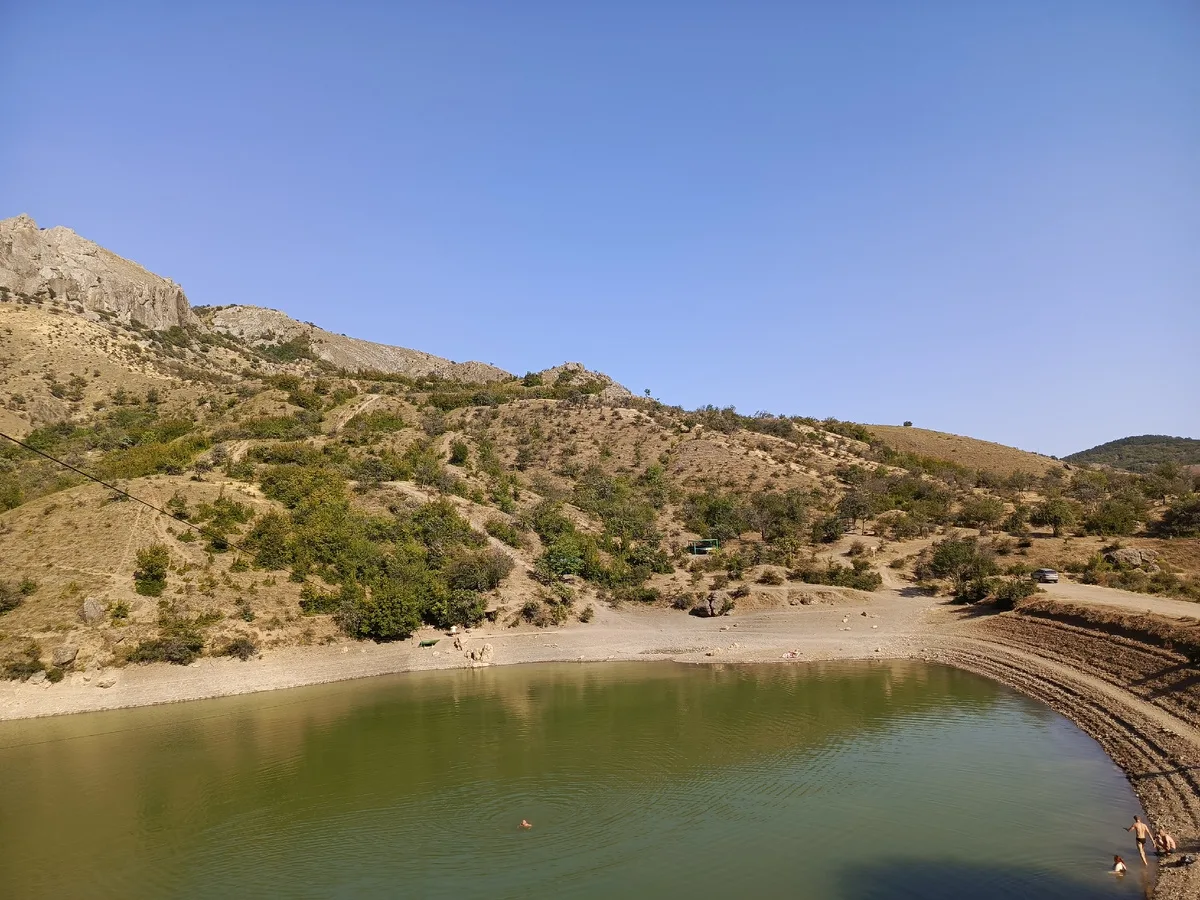 Озеро Панагия в Крыму — это водоем невероятного изумрудного цвета, со всех сторон зажатый скалистыми пиками гор Музгал и Чобан-Куле. Цвет воды обусловлен растворенными в ней минералами и отражением густого зеленого леса. Над озером натянута тарзанка для любителей пощекотать нервы. От озера вглубь ущелья уходит живописная экологическая тропа вдоль реки Арпат. Она ведет к Арпатским водопадам — каскаду небольших, но очень красивых водопадов, образующих в скалах природные купели в форме сердец («Ванна любви»).