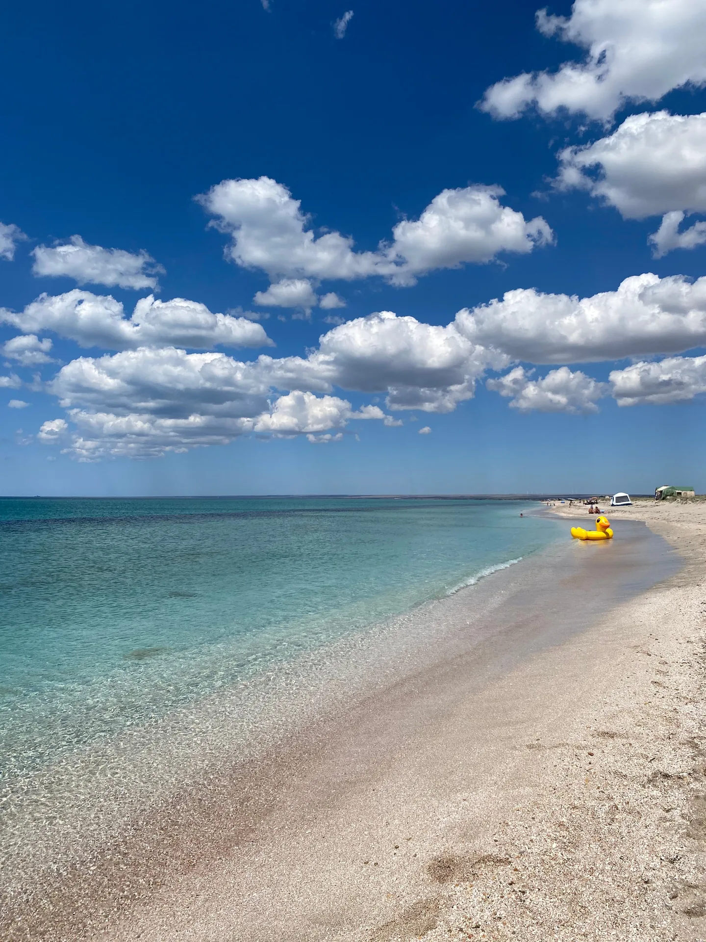 Коса Беляус — это 10-километровая полоса идеального светлого песка, смешанного с мелкой ракушкой. За невероятный цвет воды и белоснежный берег это место неофициально прозвали «крымские Мальдивы». Здесь нет крупных отелей, шумных набережных и развитой инфраструктуры — только бескрайнее море, пологий вход в воду и степной ветер. Вода здесь прогревается быстро и остается прозрачной даже при легком волнении (так как нет глины, только белый песок Крым). Вдоль косы высажены искусственные рощи из лоха серебристого и акаций.