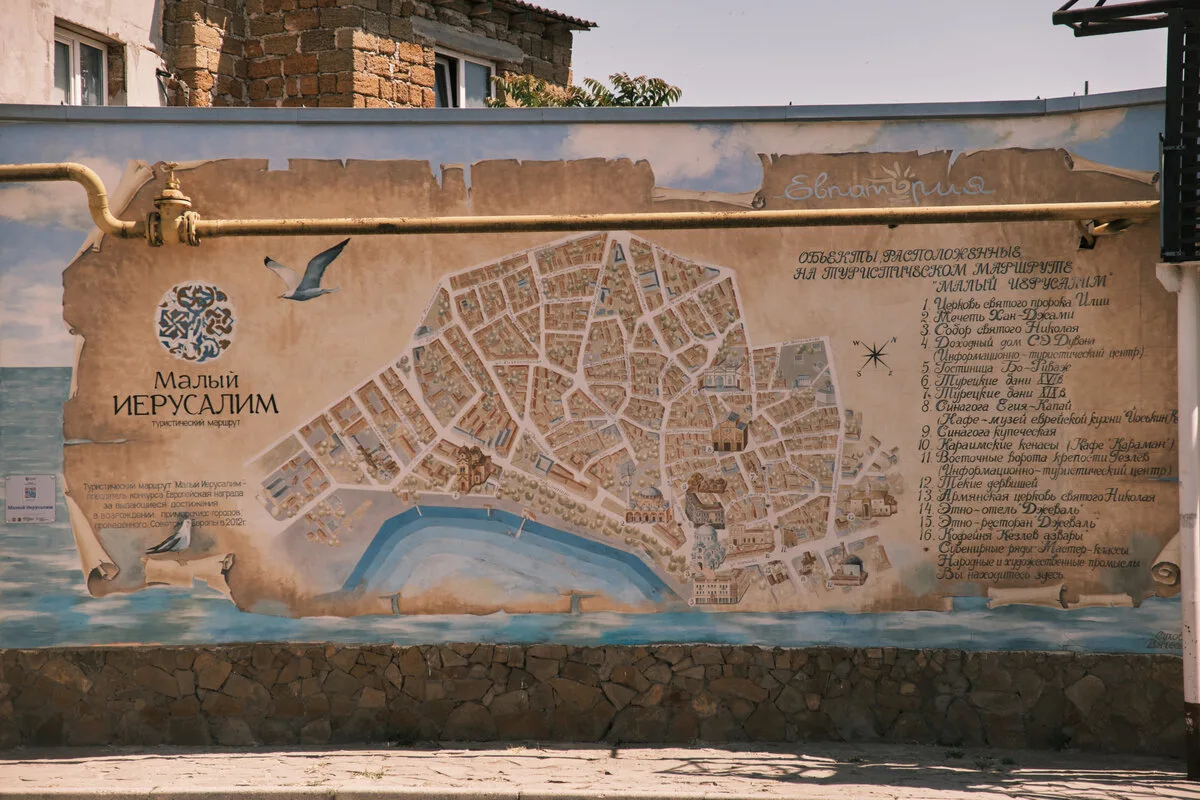 Евпатория (древний Гезлев) — город 25 веков. Маршрут «Малый Иерусалим» проходит по средневековой части города, где исторически соседствовали разные народы и религии. Это уникальный пример веротерпимости: здесь на площади всего в 2 квадратных километра веками мирно уживались мусульмане, христиане, иудеи и караимы. Проект реконструкции этого района получил золотую медаль ЮНЕСКО.