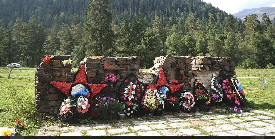 Мемориал невозможно пропустить — он стоит прямо у дороги и выглядит как крепость. Главный элемент — это стилизованные под доты железобетонные стелы, напоминающие неприступные скалы. Они символизируют преграду, о которую разбились вражеские войска. Напротив стел, на возвышенности, горит Вечный огонь и находится братская могила. Это одна из самых значимых достопримечательности по дороге в Архыз. Рядом расположено здание музея, выполненное в форме огромной бетонной дуги. Экспозиция внутри рассказывает про история битвы за Кавказ, хранит личные вещи бойцов и оружие, найденное поисковиками на ледниках.