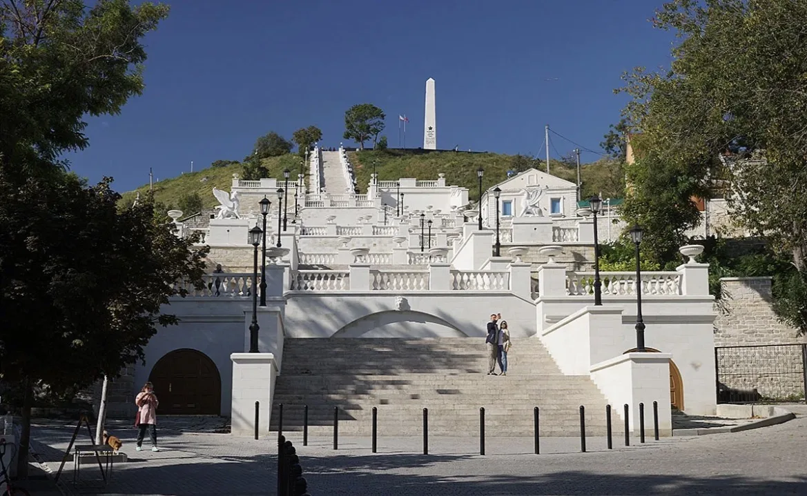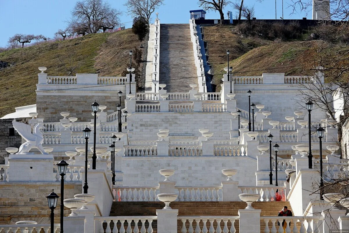 Гора Митридат названа в честь понтийского царя Митридата VI Евпатора, великого врага Римской империи, который правил здесь более 2000 лет назад. Именно здесь находился акрополь античного города Пантикапей — столицы мощного Боспорского царства. В XIX веке (1833–1840 гг.) итальянский архитектор Александр Дигби построил грандиозную лестницу, ведущую на вершину, которая стала главным украшением города.