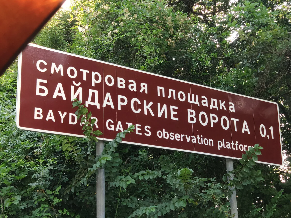 Байдарские ворота представляют собой массивный античный портик из тесаного известняка, состоящий из двух пилонов и перекрытия. Они установлены на одноименном перевале на высоте 503 метра над уровнем моря. По бокам к воротам пристроены небольшие помещения (ранее там была почтовая станция). На крыше портика оборудована смотровая площадка. Главное, ради чего сюда едут туристы — это фантастический вид на побережье, бескрайнее море и парящий внизу храм Воскресения Христова. Это самый красивый перевал Крыма, через который проходит старое Севастопольское шоссе.