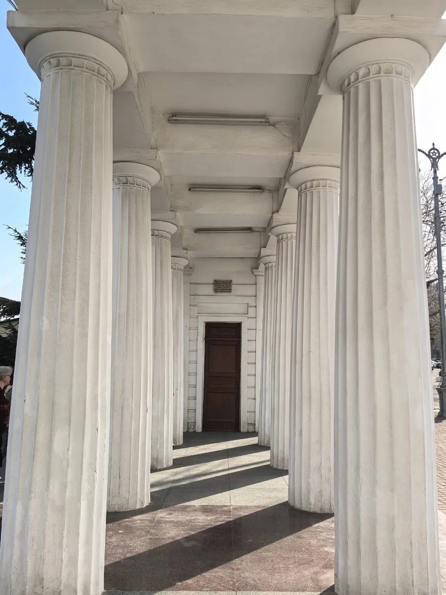 Графская пристань — это главные морские ворота города и самый узнаваемый архитектурный символ Южной бухты. Памятник представляет собой величественную белоснежную колоннаду дорического ордера, от которой к морю спускается широкая гранитная лестница. По бокам лестницу охраняют мраморные львы работы итальянского скульптора Фердинандо Пелличио. Это парадный фасад города, где традиционно начинаются все военно-морские парады.