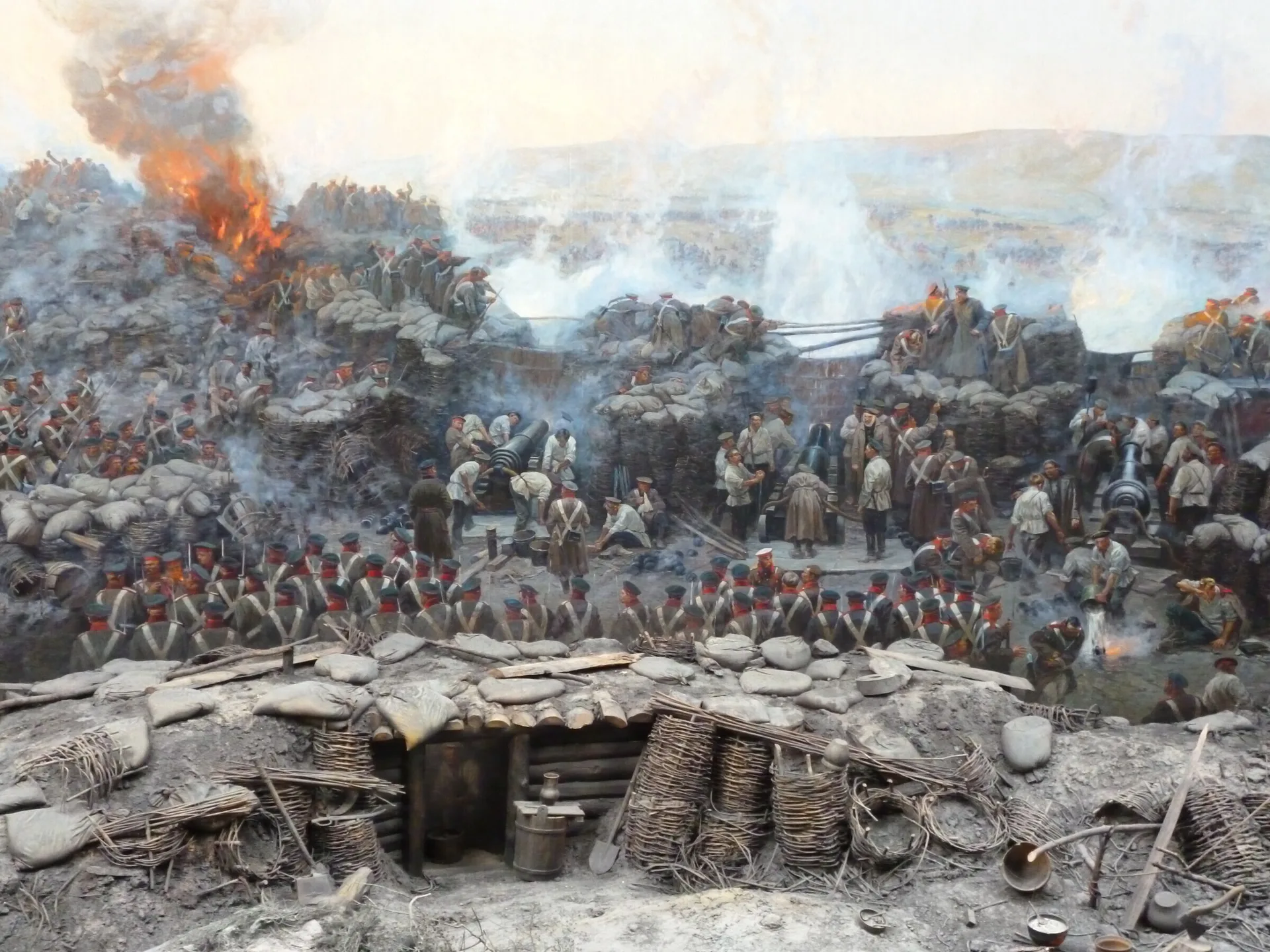 Этот монументальный памятник искусства был создан к 50-летию героической обороны города во время Крымской войны. Автор шедевра — выдающийся художник-баталист Франц Рубо. Работа над полотном велась в Мюнхене в течение трех лет. Здание Панорамы пострадало во время Великой Отечественной войны: в 1942 году в него попала бомба, и уникальный холст загорелся. Спасая картину, моряки разрезали её на куски и вынесли из огня. Позже советские реставраторы совершили чудо, восстановив полотно практически заново.