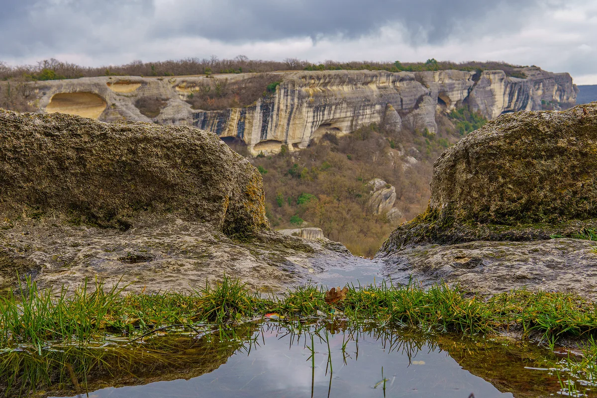 В отличие от Чуфут-Кале или Мангупа, Эски-Кермен впечатляет огромным количеством именно пещерных сооружений — их здесь вырублено более 350. Плато имеет вытянутую форму, напоминающую корабль. Гуляя по «палубе» этого каменного судна, туристы спускаются в многокомнатные пещерные усадьбы, зерновые ямы и казематы. Главная особенность города — глубокие колеи в камне, протертые колесами телег за сотни лет. С обрывов открываются фантастические виды на соседние долины и башню Кыз-Куле.