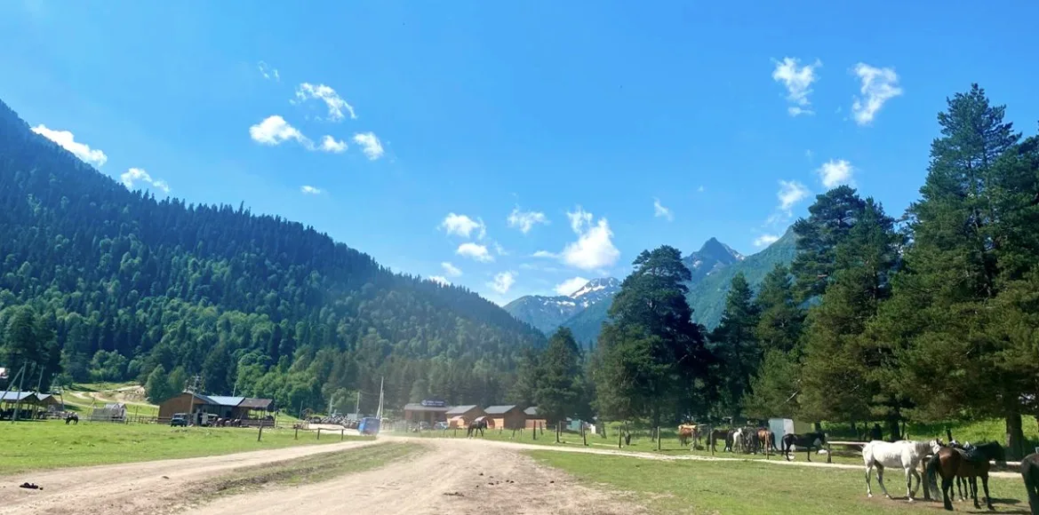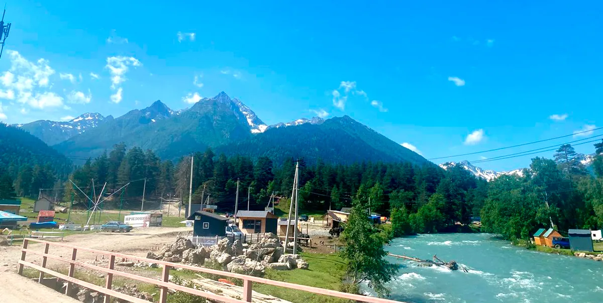 Таулу — это огромная живописная равнина, окруженная сосновым лесом и горами, расположенная на слиянии рек Псыш и София. Сегодня это самый колоритный и шумный уголок курорта. Здесь царит атмосфера настоящего кавказского праздника: дымят мангалы, стоят ряды с сувенирами, предлагают конные прогулки Архыз и поездки на квадроциклах. Это главная база для тех, кто предпочитает «дикий» отдых с палатками — здесь можно разбить лагерь прямо на берегу реки. Отсюда же стартует весь джиппинг в Архызе: десятки УАЗов ждут туристов, чтобы отвезти их на Софийские водопады или Белый водопад.