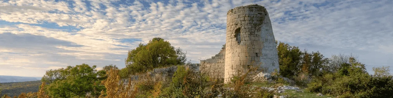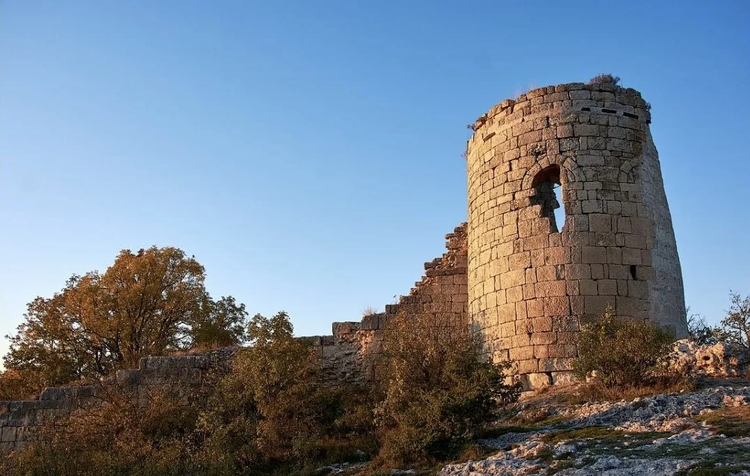 Сюйреньская крепость расположена на узком, выдающемся вперед каменном мысе Куле-Бурун (Башенный мыс), который с трех сторон обрывается в долину отвесными скалами высотой в десятки метров. Уязвимой была только одна сторона, которую строители перегородили мощной оборонительной стеной толщиной 2,5 метра. В центре стены возвышается главная достопримечательность — двухэтажная круглая башня Крыма высотой 10 метров с купольным сводом, на котором сохранились остатки уникальных фресок.