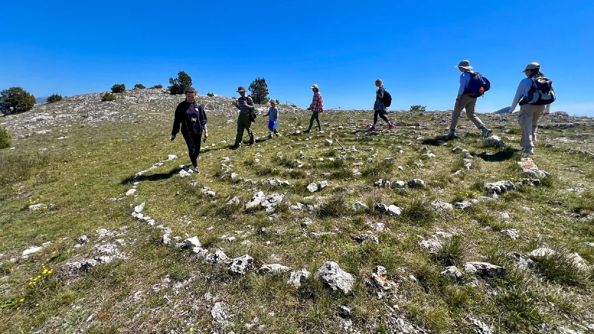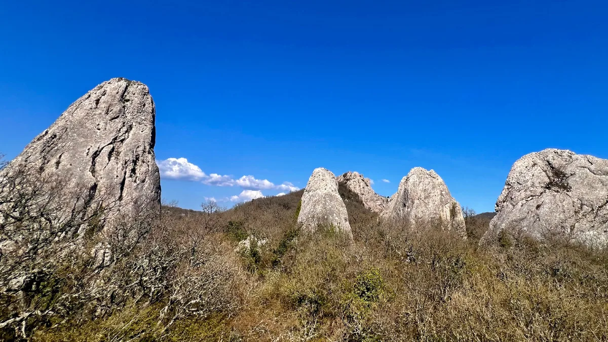 Храм Солнца (Скалы Тышлар) — это природный каменный ансамбль, напоминающий гигантский раскрытый цветок или ладонь. Семь каменных "лепестков" расположены по кругу под углом 60 градусов, а в центре находится плоский камень-алтарь. Это одно из самых мощных мест силы в Крыму. Сюда приходят загадывать желания, медитировать и "заряжаться энергией". Рядом возвышается гора Ильяс-Кая (Святого Ильи), с которой открывается вид на "цветок" сверху.