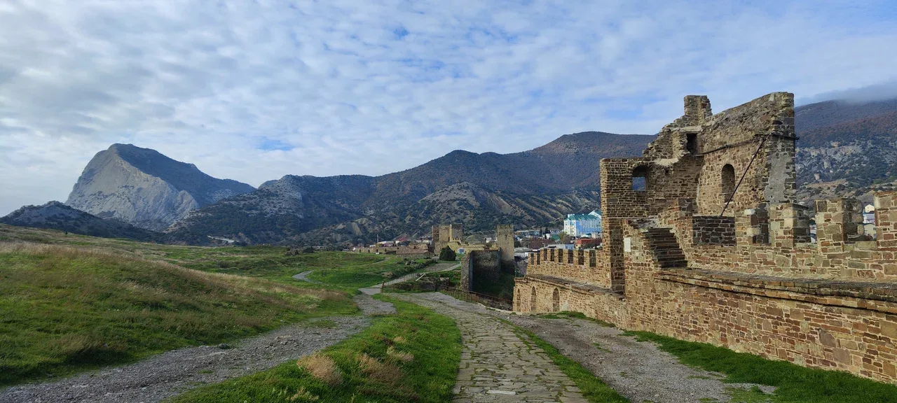 Мощное фортификационное сооружение площадью 30 гектаров, расположенное на конусообразной горе Крепостной (Дженевез-Кая). Стены высотой до 8 метров и толщиной до 2 метров укреплены 14 башнями. На самой вершине находится Дозорная (Девичья) башня, откуда открывается головокружительный вид на море и горы. Это настоящая средневековая крепость в Крыму, где летом проводят рыцарские турниры.