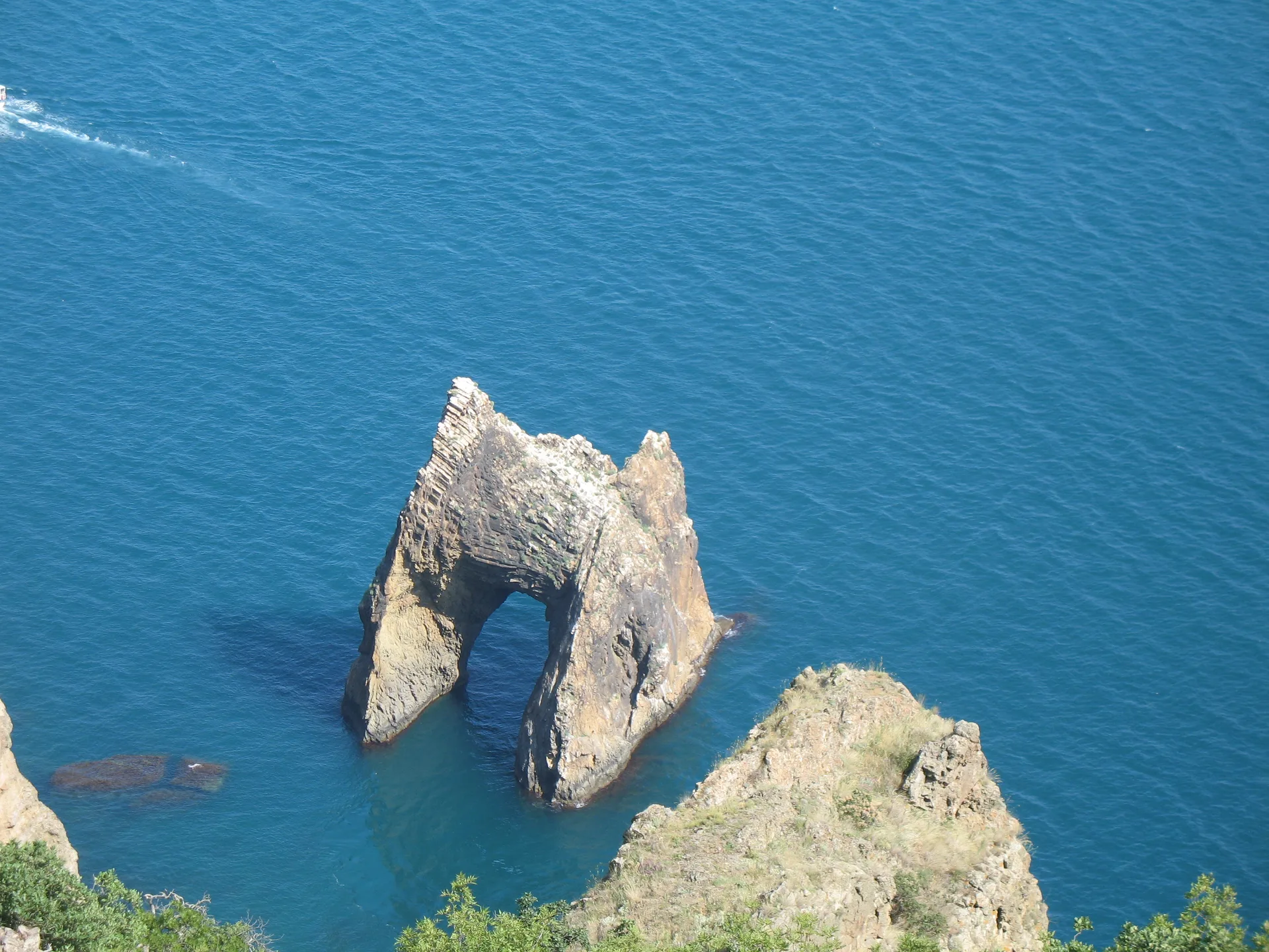 Это музей минералов под открытым небом. Здесь можно увидеть застывшую лаву и причудливые скалы: «Король и Королева», «Иван-Разбойник», «Лев». Символ заповедника — скала-арка Золотые ворота Крым, стоящая прямо в море. Считается, что пройти сквозь неё на лодке — к большой удаче (хотя сейчас проход запрещен ради безопасности птиц). Попасть в Карадагский заповедник с экскурсией можно только в составе организованной группы по экологической тропе.
