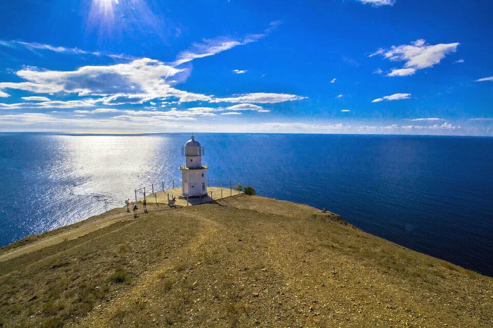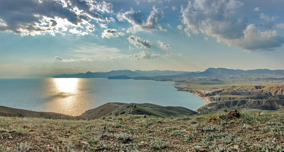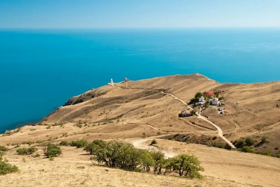 Мыс Меганом — это целый гористый полуостров между Судаком и Коктебелем, выдающийся в море на несколько километров. Ландшафты здесь марсианские: выжженные солнцем желто-красные холмы, глубокие овраги, каменные хаосы и полное отсутствие лесов. Меганом славится самой чистой водой на всем побережье и уютными дикими бухтами с галечными пляжами (Гравандовая, Акулья). На самой крайней точке мыса стоит старинный белоснежный маяк 1895 года постройки. Место невероятно популярно у дайверов, йогов, эзотериков и любителей отдыха с палатками.
