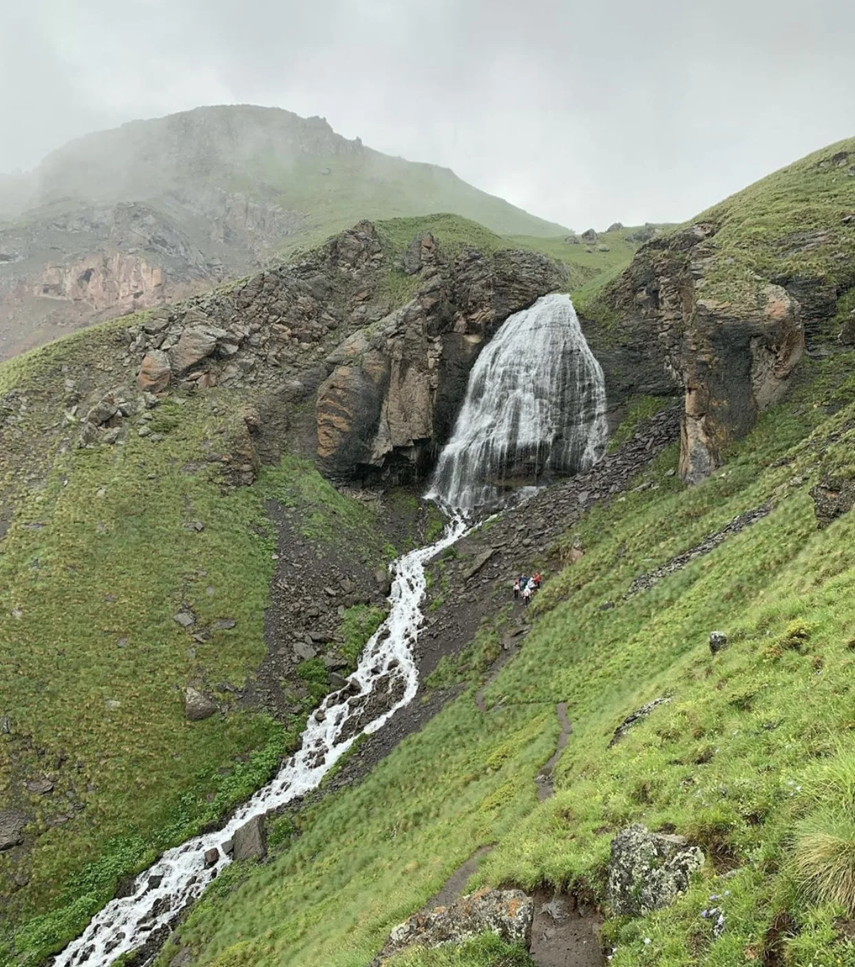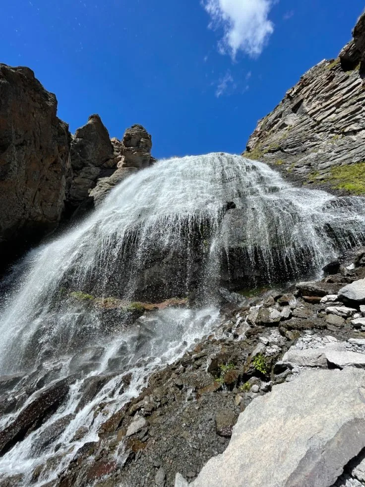 Самый посещаемый водопад региона, расположенный на высоте 2800 метров. Поток воды срывается с базальтовых скал, разбиваясь на сотни струй, что действительно напоминает распущенные волосы. Водопад Девичьи Косы интересен тем, что летом можно зайти в грот "за струей" и посмотреть на ущелье сквозь стену воды. Дорога сюда — это классический треккинг и лучшая акклиматизация перед Эльбрусом. Подъем плавный, по широкой грунтовой дороге, с которой открываются виды на Баксанское ущелье и ледник «Семерка». Это одна из главных природных достопримечательностей Терскола.