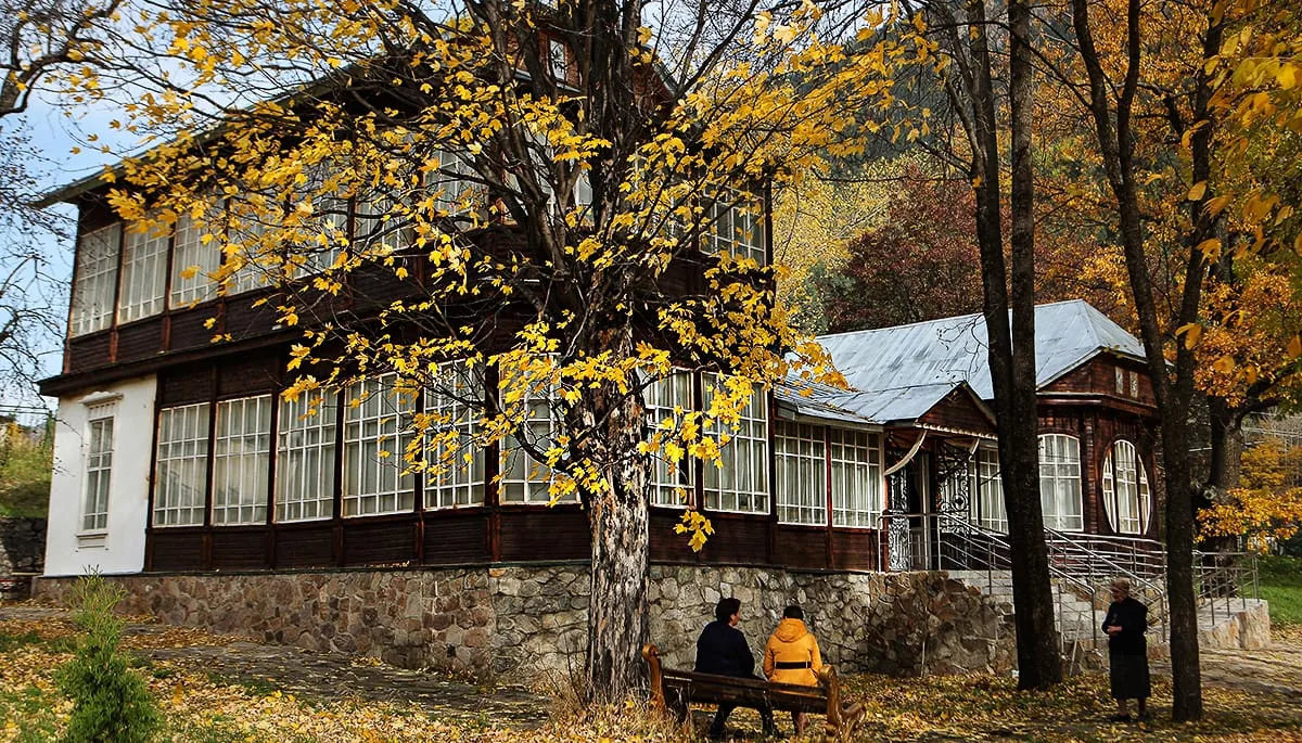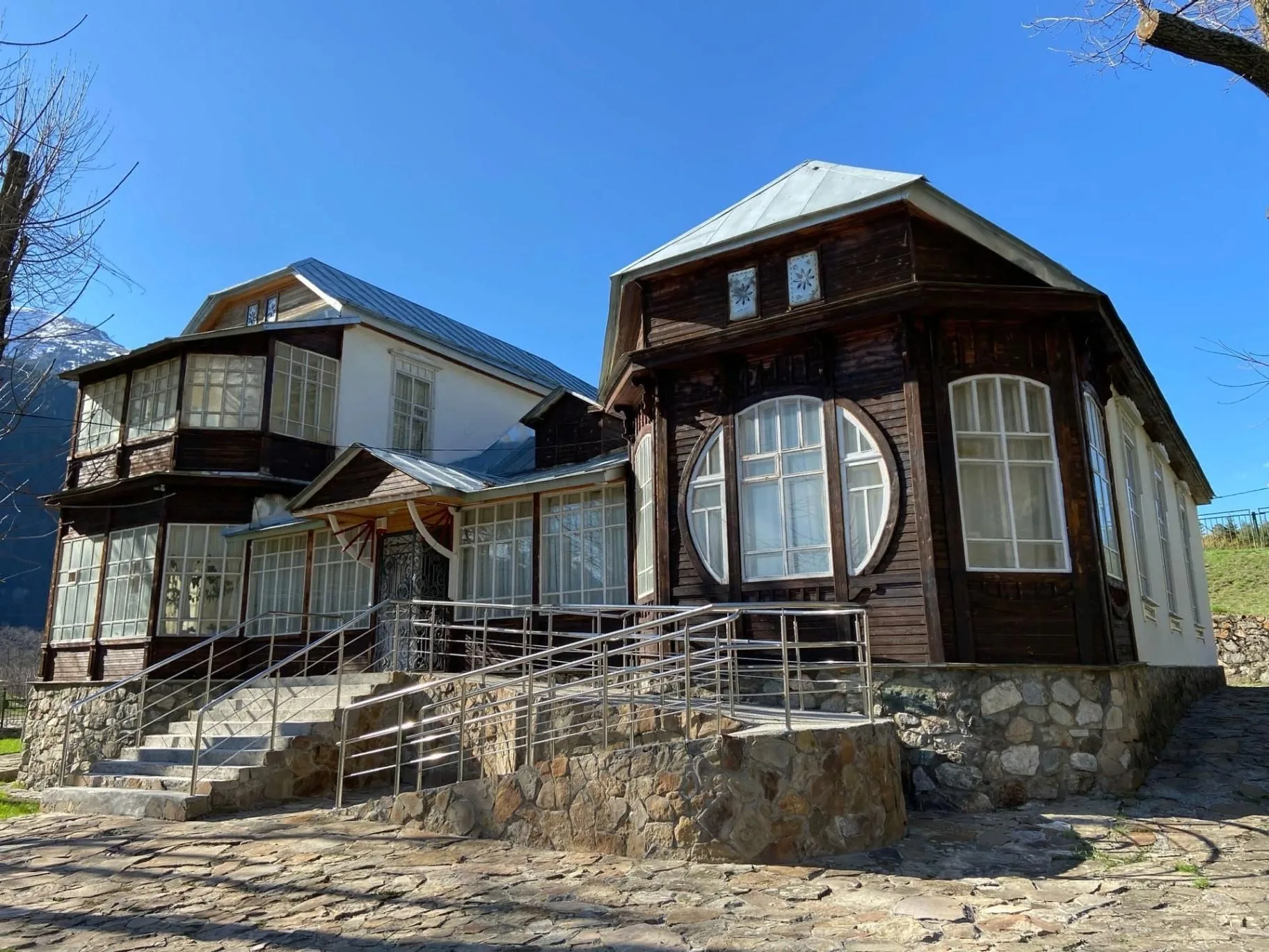 Постройка сразу привлекает внимание — это изящный деревянный терем с резными элементами, который идеально вписывается в горный пейзаж. Сейчас в его стенах располагается уникальный музей истории туризма и альпинизма. Экспозиция пропитана духом приключений: здесь выставлено раритетное альпинистское снаряжение, штормовки первопроходцев, старые ледорубы, черно-белые фотографии из первых экспедиций и подлинные документы. Скрипучие деревянные полы и запах старого дерева делают атмосферу невероятно уютной и живой.