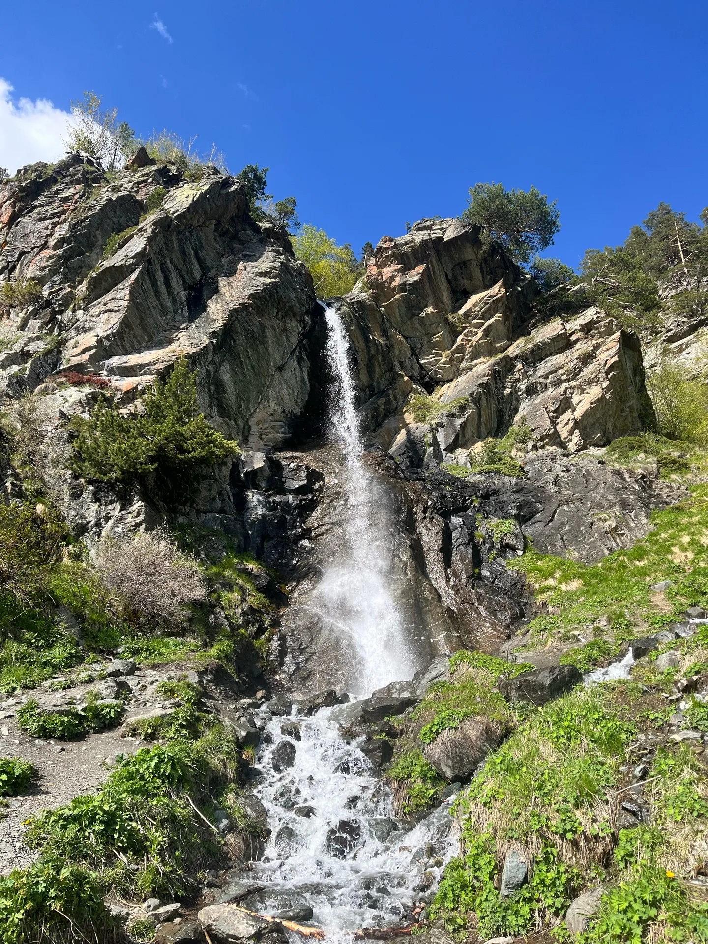 Это не самый большой, но очень живописный водопад. Чистая струя падает с отвесной скалы, разбиваясь на множество брызг. Главная ценность этого места — не только сам поток, но и вид, который открывается от него. Это лучшая естественная смотровая площадка Архыз, откуда весь поселок виден как на ладони. Водопад окружен лесом и альпийским разнотравьем.
