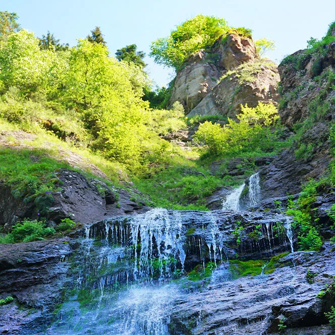 Казачий водопад спрятан в густом пихтовом лесу. Это узкий, но стремительный поток, который пробил себе путь в скале. Вода здесь ледяная и очень вкусная. Место очень атмосферное: вокруг вековые деревья, камни, поросшие мхом, и полумрак даже в самый солнечный день. Это настоящая прогулка по лесу Архыз, где чувствуется уединение.