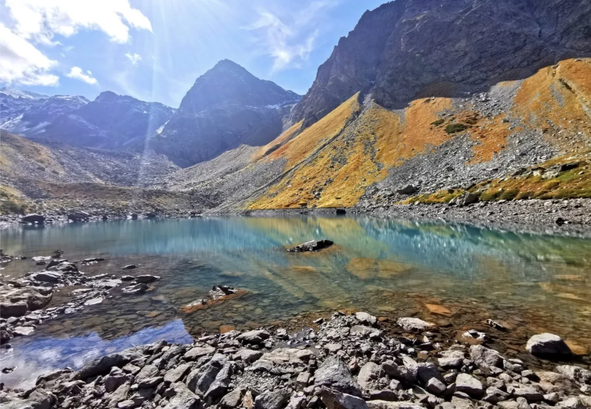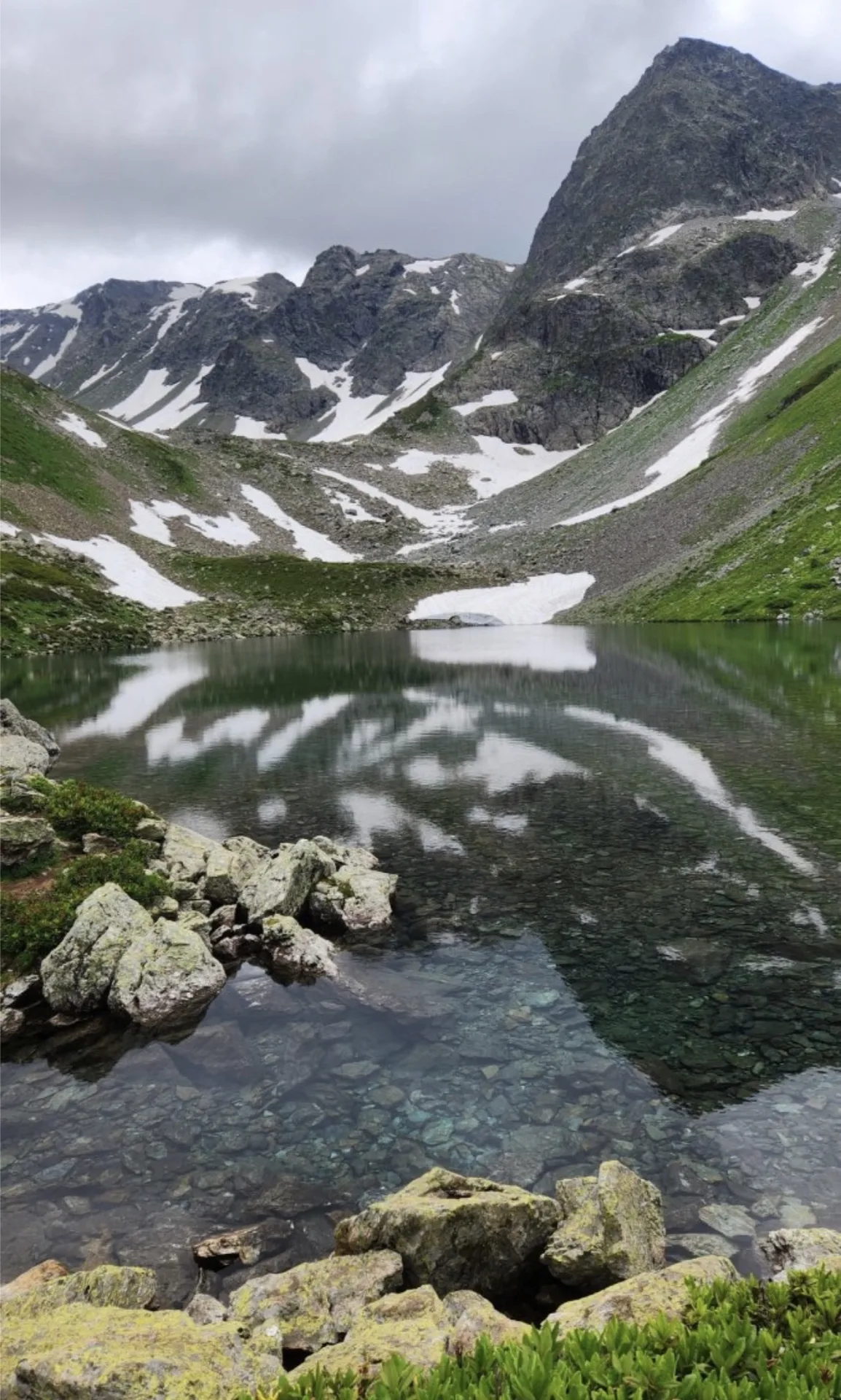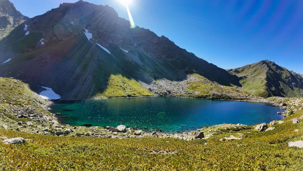 Семицветное — одно из самых крупных озер в этом районе. Оно лежит в чаше из каменных осыпей и скал. Вода здесь холодная и прозрачная. Главная фишка — это именно игра цвета. Если смотреть на воду под разными углами, можно увидеть переливы от фиолетового до зеленоватого. Это место демонстрирует, насколько уникальная природа Кавказа богата на краски.