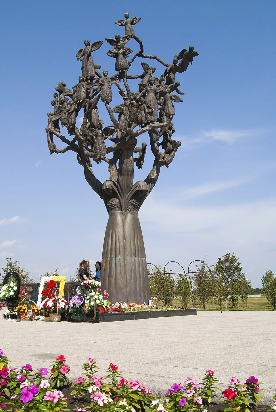 Бронзовая скульптура высотой около 9 метров представляет собой ствол дерева, который формируют четыре женские фигуры. Они стоят спиной друг к другу, их головы опущены в глубоком горе. Поднятые вверх руки женщин переплетаются, образуя ветви дерева, на которых сидят и взлетают в небо маленькие ангелы — символ душ погибших детей. Этот памятник матерям Беслана потрясает своей пронзительностью и метафоричностью.