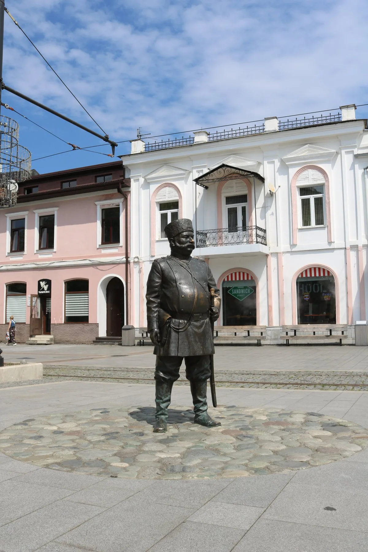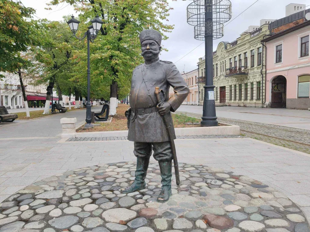 Скульптура представляет собой рослого усатого мужчину в исторической форме городового начала XX века. Он облачен в шинель, на голове — характерная шапка с кокардой, а на поясе висит шашка в ножнах. Полицейский стоит в уверенной позе, словно добродушно наблюдая за прохожими. Такие бронзовые скульптуры Владикавказа служат отличным дополнением к дореволюционным фасадам, подчеркивая, насколько хорошо сохранилась архитектура старого города. Если вы ищете интересные места Проспекта Мира, этот страж порядка обязательно привлечет ваше внимание.